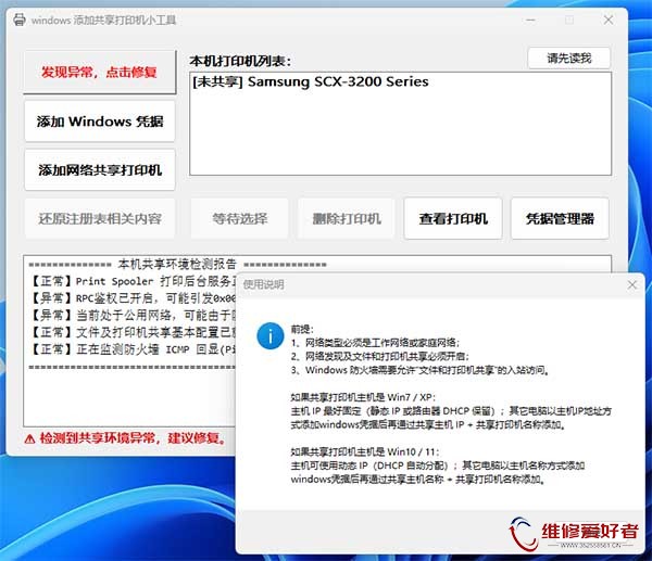 维修爱好者-家电电工资料网 附件中心 电脑网络技术 电脑办公网络软件 windows_添加共享打印机小工具.rar