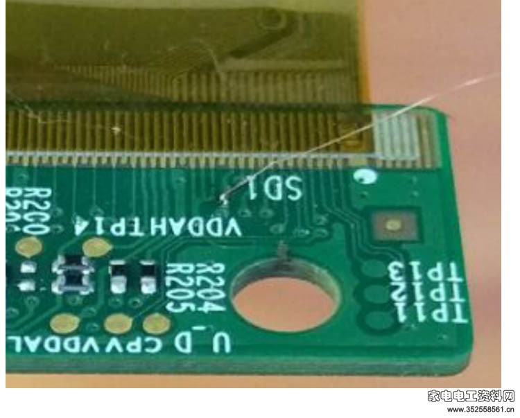 维修方法很简单 我们人为的飞一根线 将边板上的VGH电压飞到Y端的TAB上