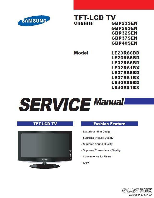 三星 LE32R81B,LE32R81W 维修手册:
