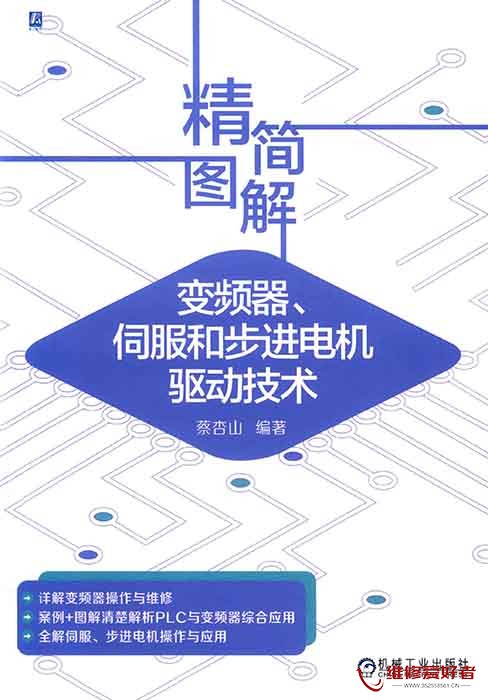 本书内容有变频器的基本结构原理,变频器的操作使用,变频器应用电路,PLC与变频器的综合应用,变频器的选用、安装与维护,变频器主电路的原理与检修、变频器电源及驱动电路的原理与检修,变频器控制系统电路的原理与检修,伺服电机、编码器与伺服驱动器,伺服驱动器的硬件介绍,伺服驱动器的操作使用,PLC与伺服驱动器的综合应用,步进电机与步进驱动器,PLC与步进驱动器的综合应用。