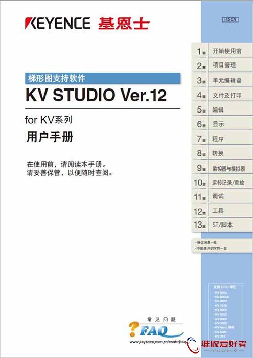 基恩士 KV STUDIO用户手册 Ver12 FOR KV系列: