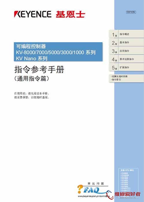 维修爱好者-家电电工资料网 附件中心 电气电工技术 工控电气自动化 基恩士 KV-8000指令参考手册.rar