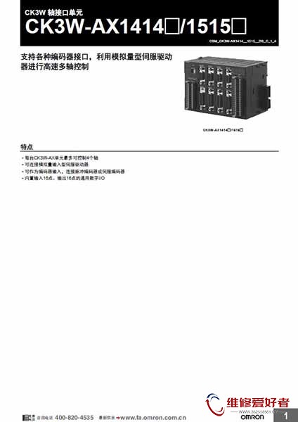 维修爱好者-家电电工资料网 附件中心 电气电工技术 工控电气自动化 欧姆龙 CK3W-AX1414_1515产品说明书.jpg